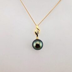 Pendentif en plaqué or, zircon, 1 perle de Tahiti ronde, catégorie C, 11mm, vert