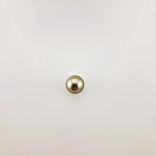 Ce collier met en avant une perle de Tahiti ronde au lustre éclatant et aux reflets peacock clairs, mêlant subtils tons de bleu, vert et violet. Sa brillance naturelle et sa couleur changeante captent la lumière avec élégance, offrant un bijou délicat et raffiné qui sublime le décolleté.